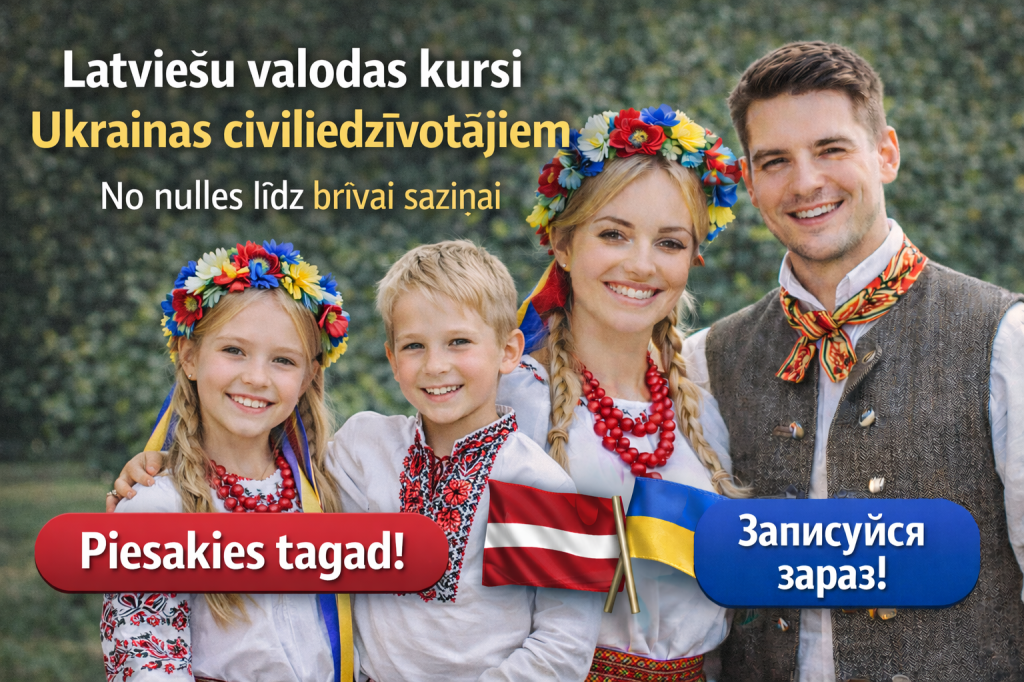 Projekts «Latviešu valodas mācības Ukrainas civiliedzīvotājiem» Latvijas valsts budžeta finansētā programma. Projekta identifikācijas numurs: 2025.LV/LVUKR/006.